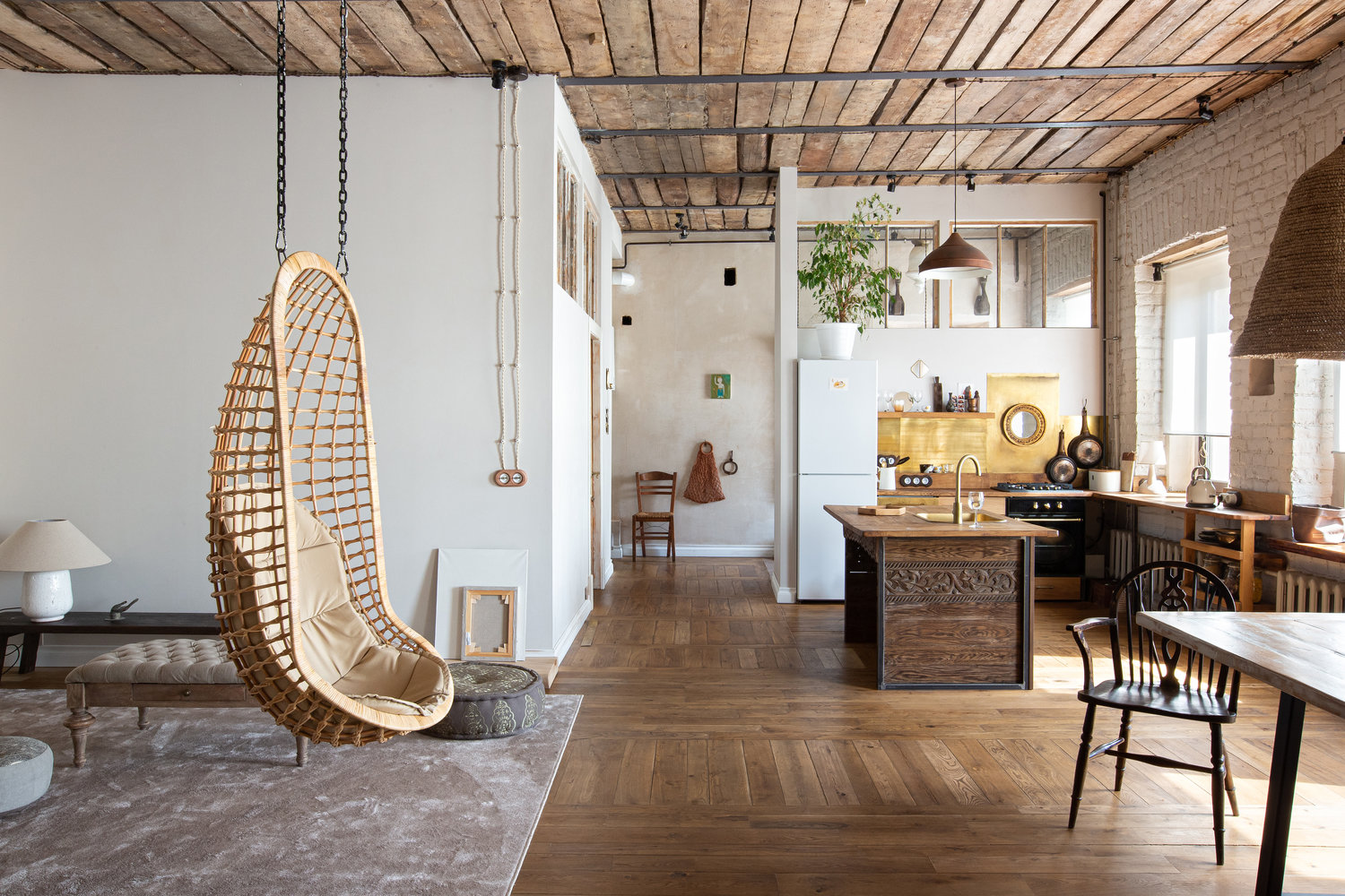 Фотография: Кухня и столовая в стиле Скандинавский, Эклектика, Эко, Квартира, Проект недели, Санкт-Петербург, 3 комнаты, Более 90 метров, Эли Гордеева, интерьер в балийском стиле, стиль Бали, атмосфера Бали в интерьере – фото на INMYROOM