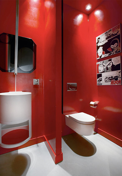 Фотография: Ванная в стиле Хай-тек, Лофт, Квартира, Цвет в интерьере, Дома и квартиры, Черный, Красный – фото на INMYROOM