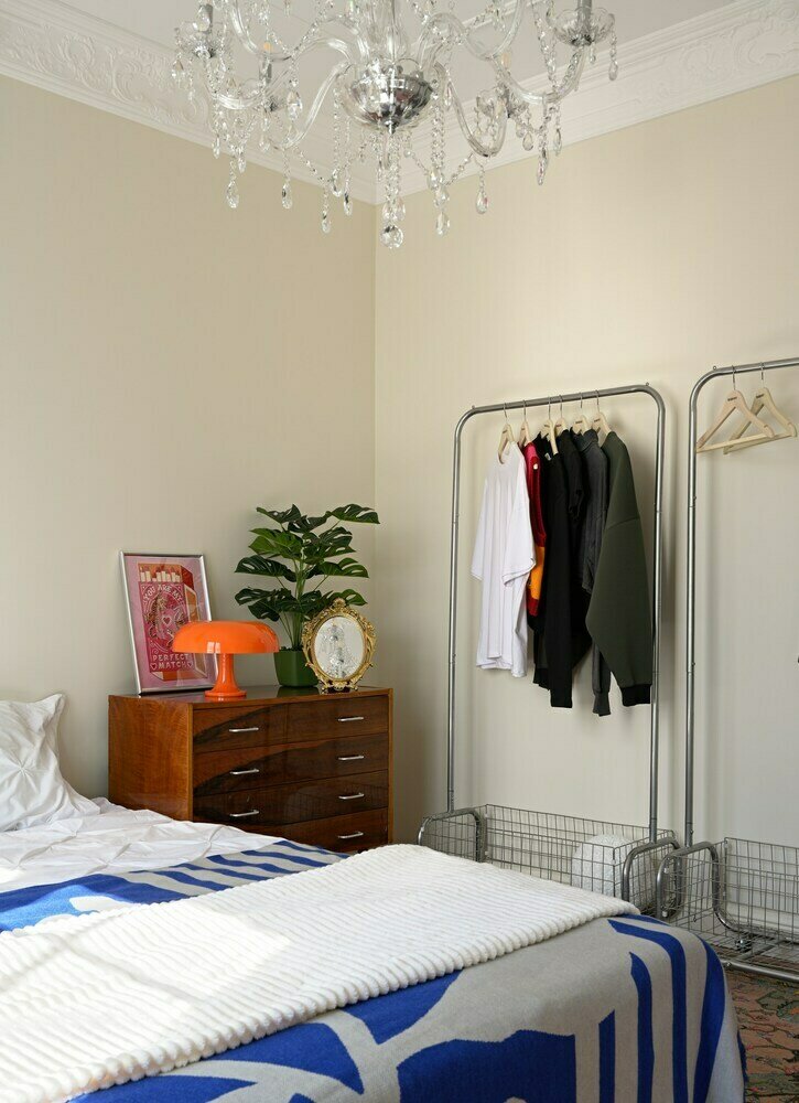 Граффити, яркие картины, RGB-подсветка в двушке 40 м²Дизайн