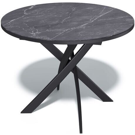 Ключевой особенностью этого стола является керамическая поверхность диаметром 90 см и долговечным, стабильным основанием. Дополняет комплект вставка на 30 см, расширяющая площадь стола.
